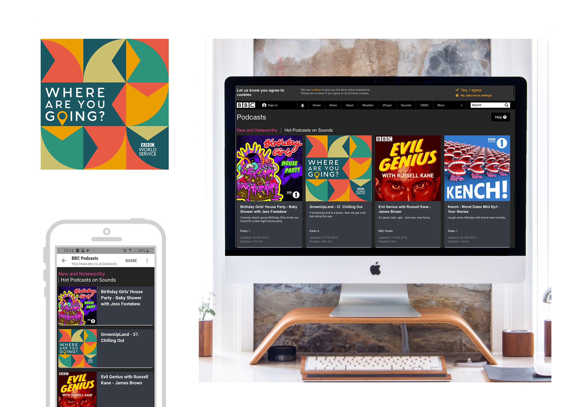 Bespoke podcast cover created for "Where are you going?" for BBC World Service via Loftus Media