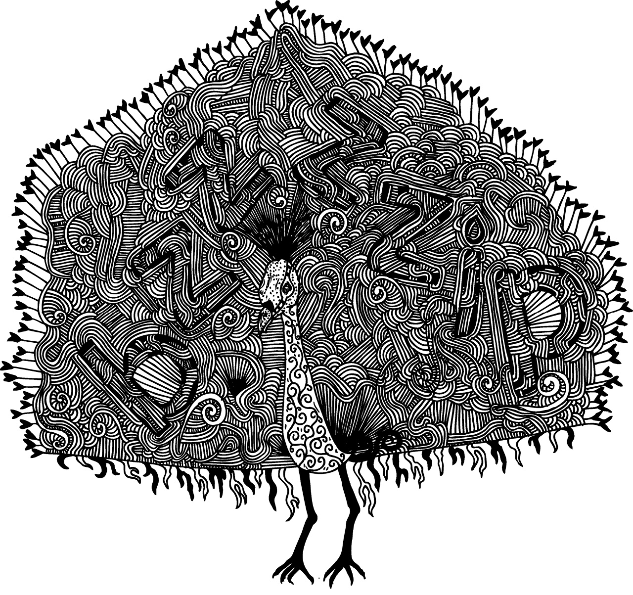 This was a project set while I was at university. We all had a word that we had to visually represent, so I decided to weave my word "Bzzzzip" into the pattern of this birds plumage.