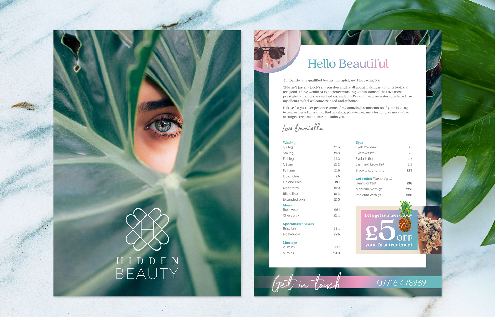 Logo and brand created for a beautician starting up her bespoke home business of beauty treatments.