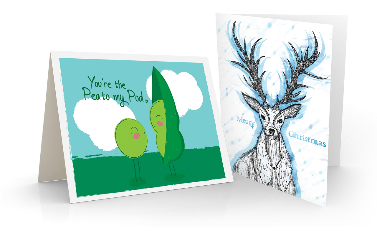 I like to try and utilise my illustrations, so I often create greeting cards for friends and family. Here are two of my favourites, both with very different styles.